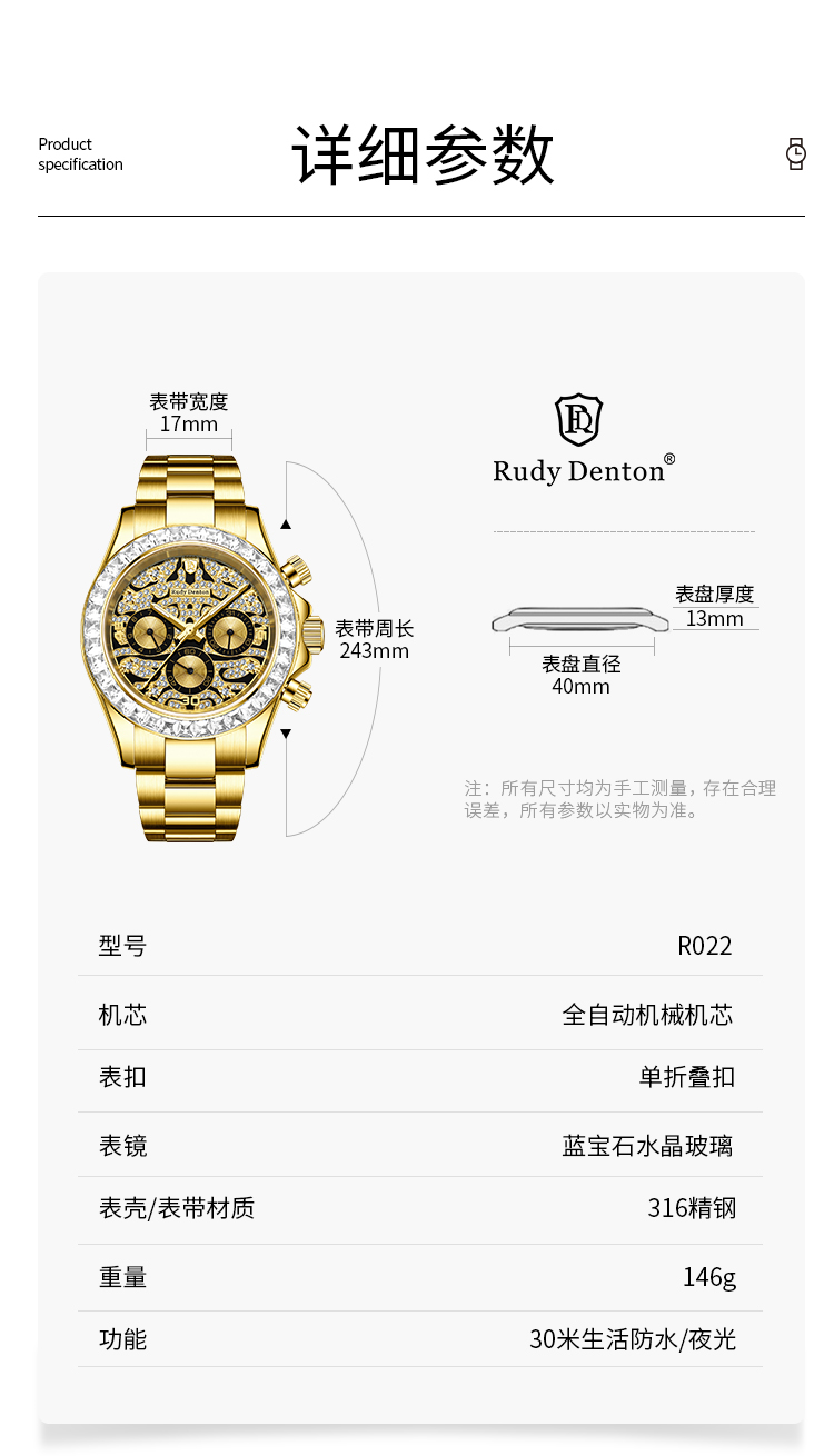 路迪丹顿男士机械奢华腕表RD022