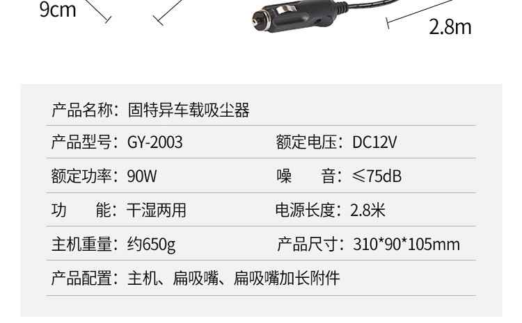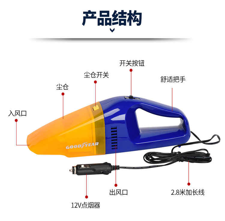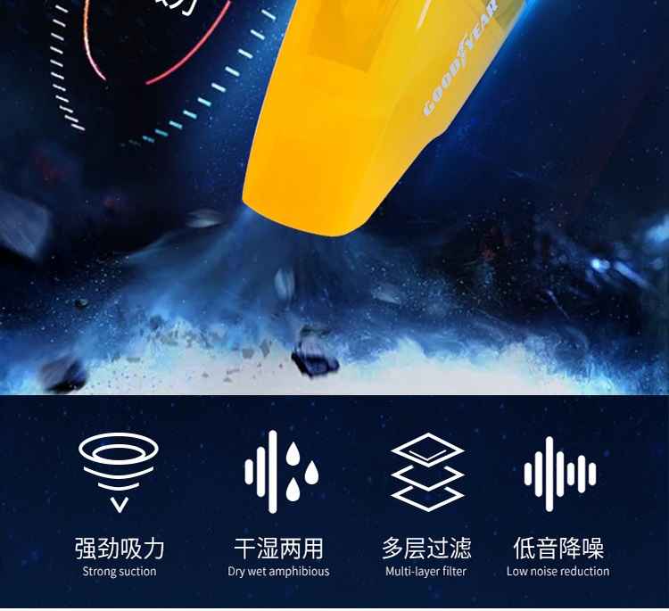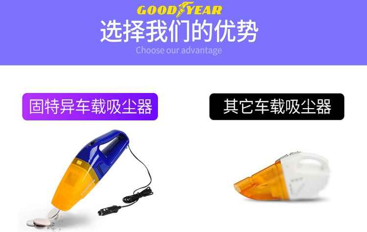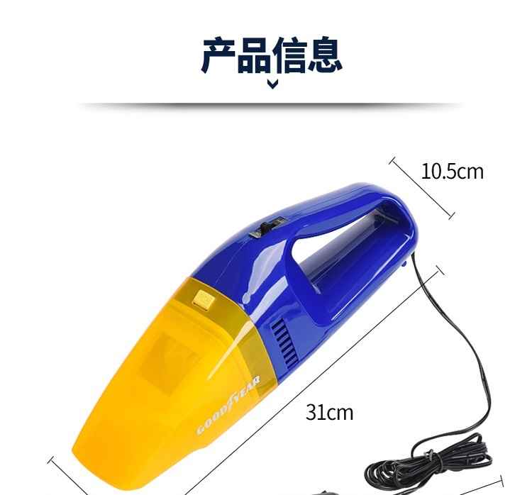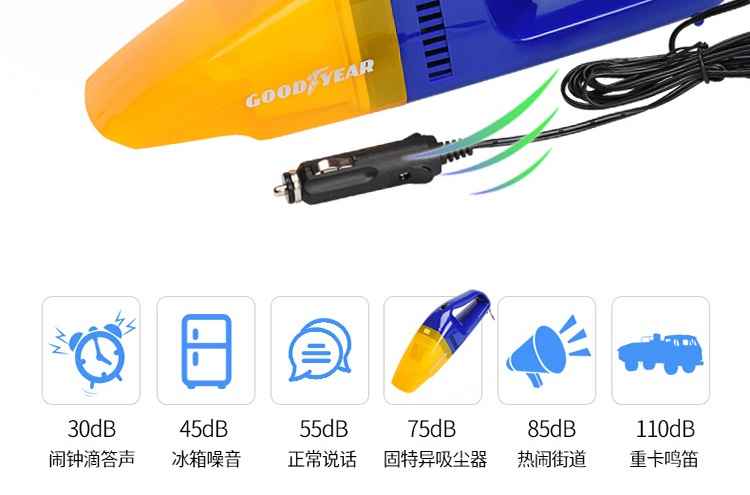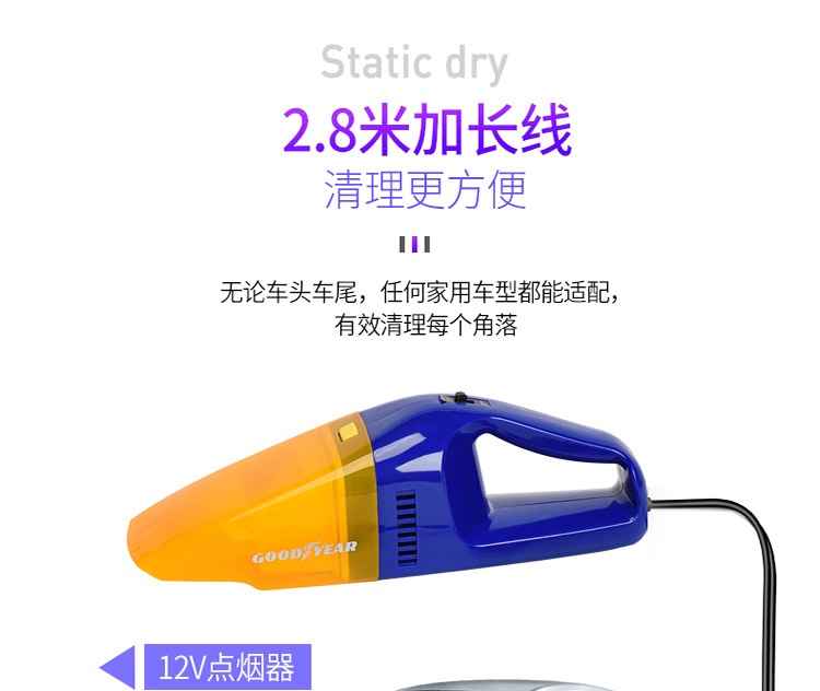 固特异Goodyear 车载吸尘器 干湿两用低噪音 有线手持 大吸力12V大功率 GY-2003