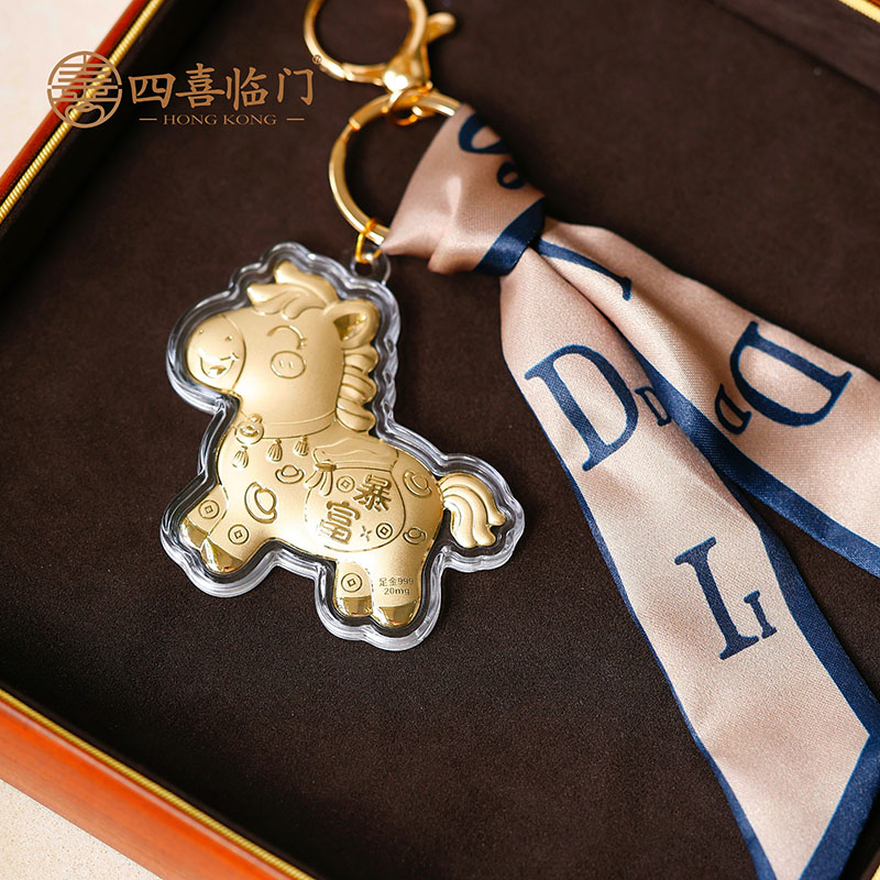 【每证一品】四喜临门足金999金箔制品钥匙扣挂件【暴富/马上发财】规格可选 新年礼物生日礼物