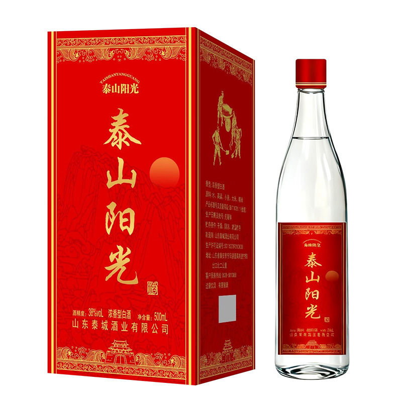 泰山阳光 38度浓香型白酒 500ml/瓶单瓶装 整箱起拍(不含手提袋)生产日期:2021年6月19日