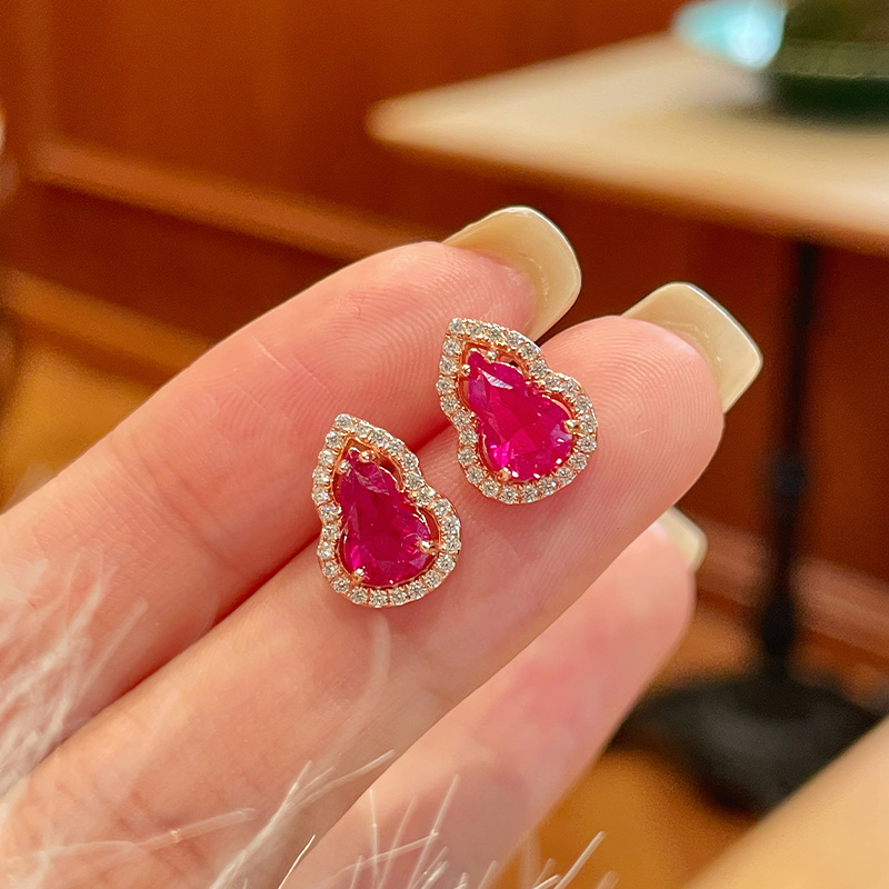 琳琯瑛福禄双全耳钉【S925银+电镀18K玫瑰金+实验室培育红宝石主石总重约2克拉】
