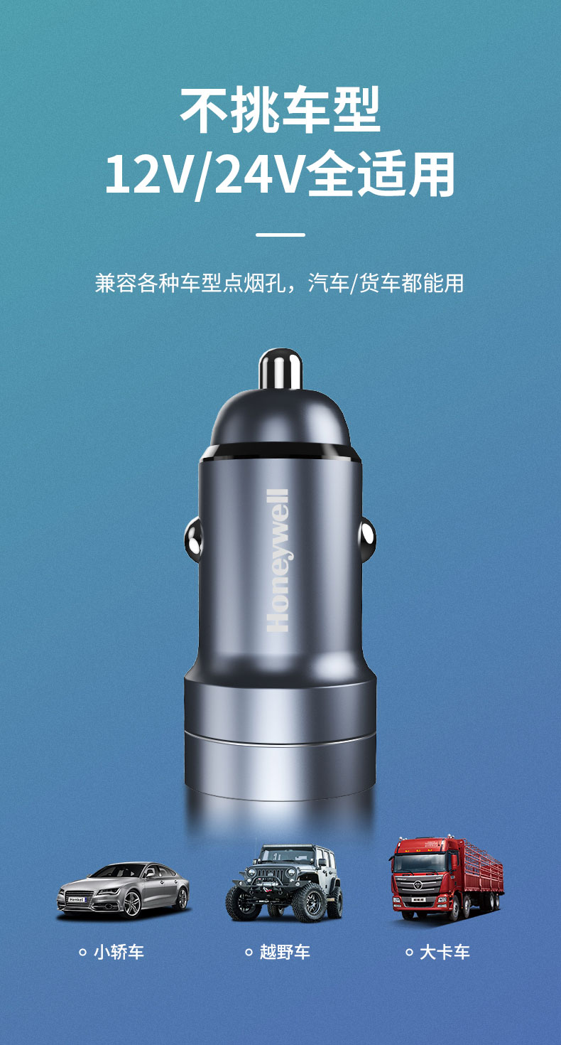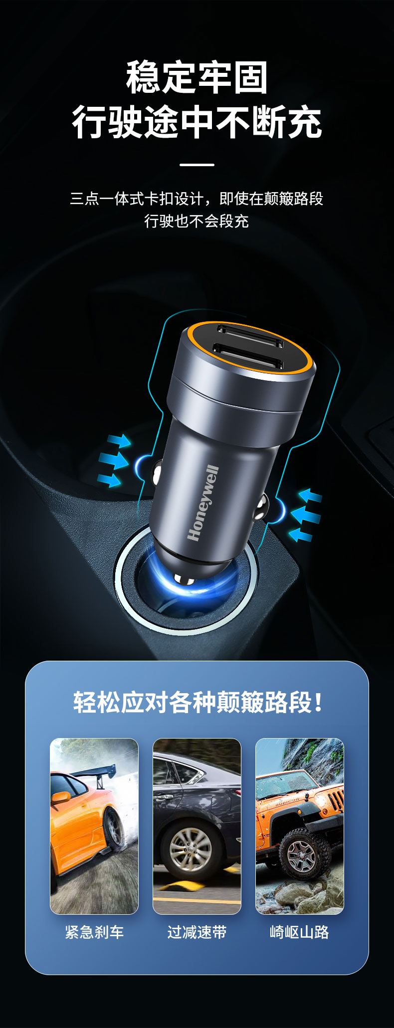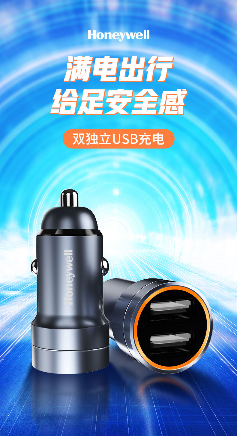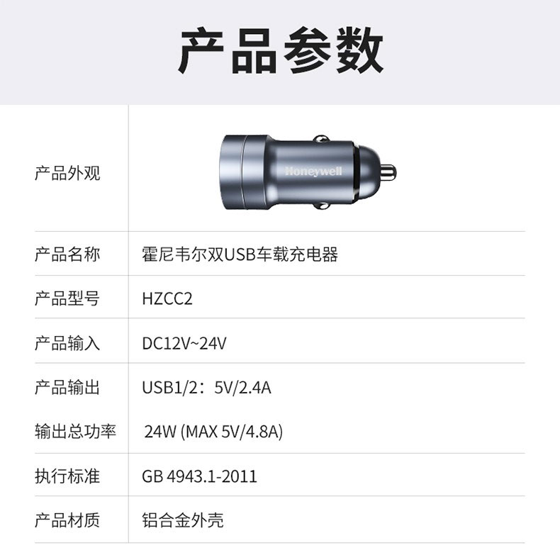霍尼韦尔 Honeywell 双USB车载充电器点烟器一拖二 HZCC2