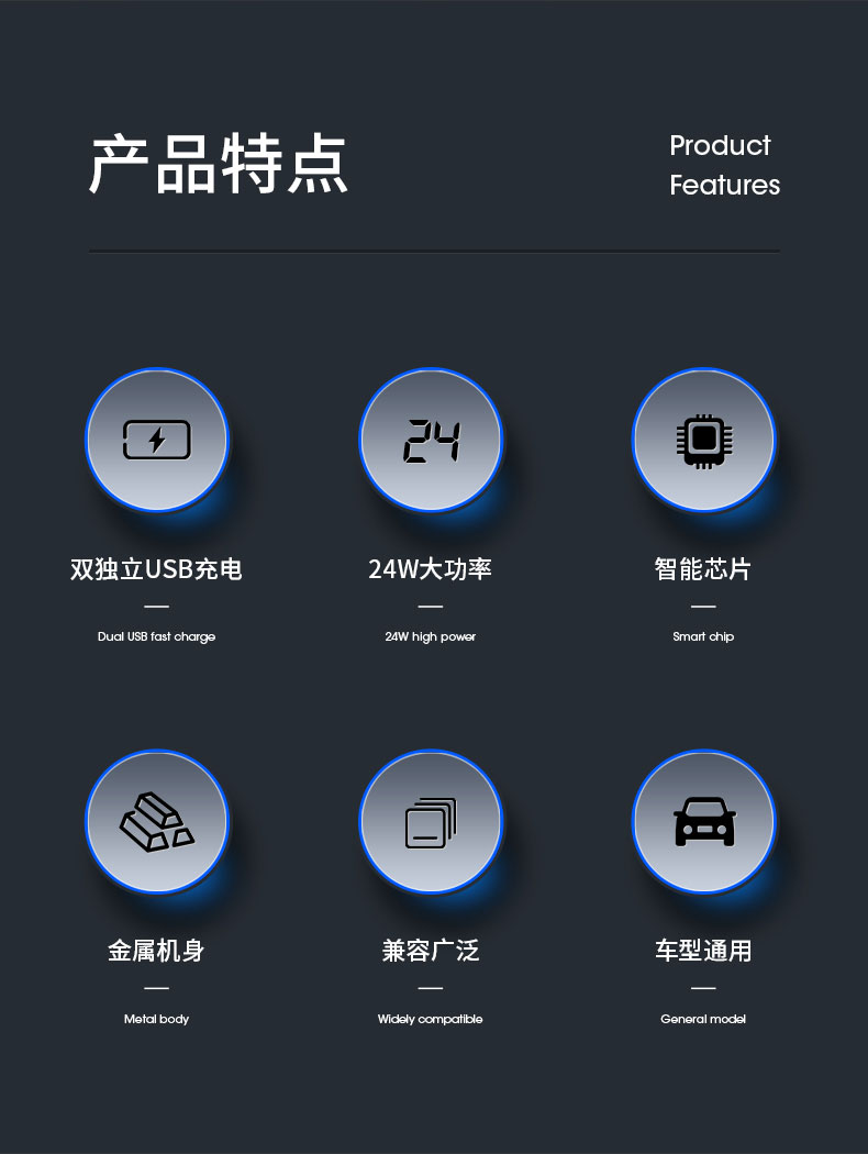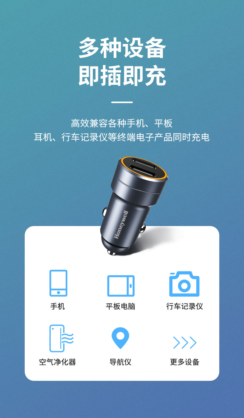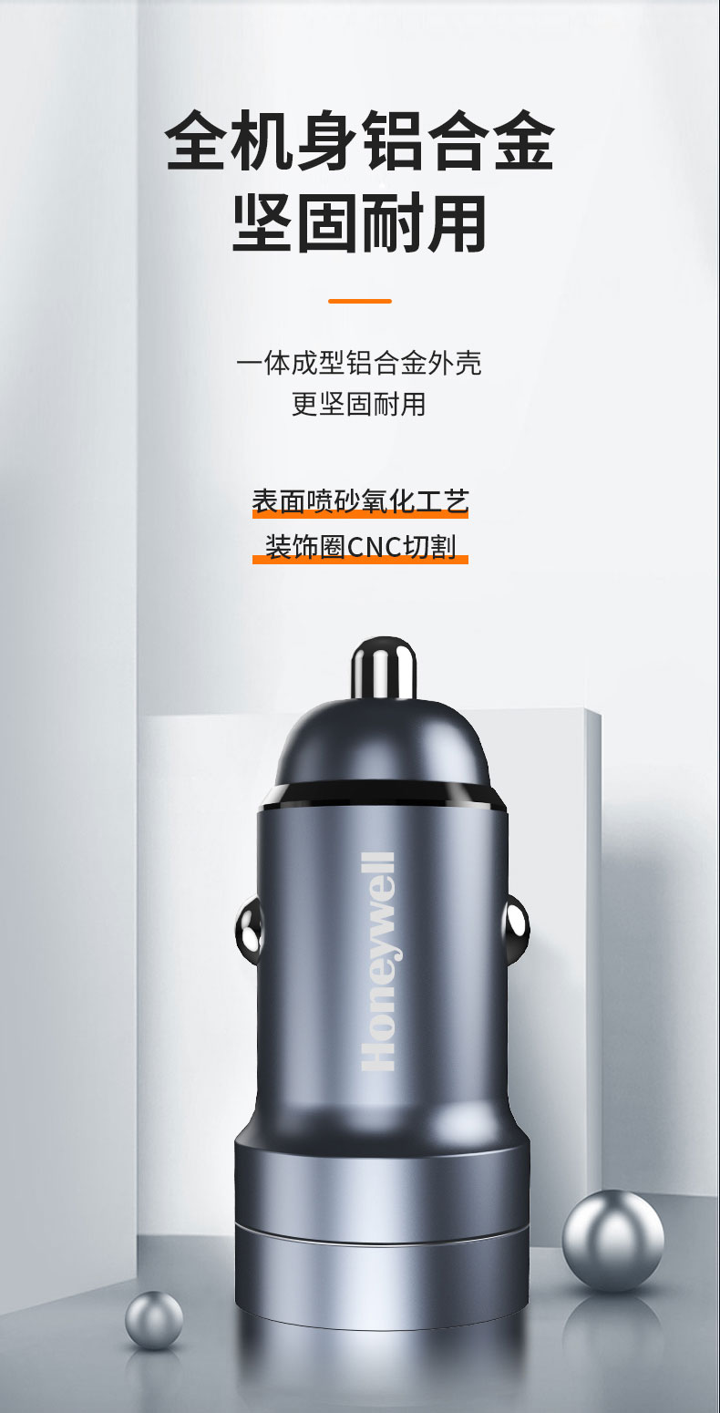 霍尼韦尔 Honeywell 双USB车载充电器点烟器一拖二 HZCC2
