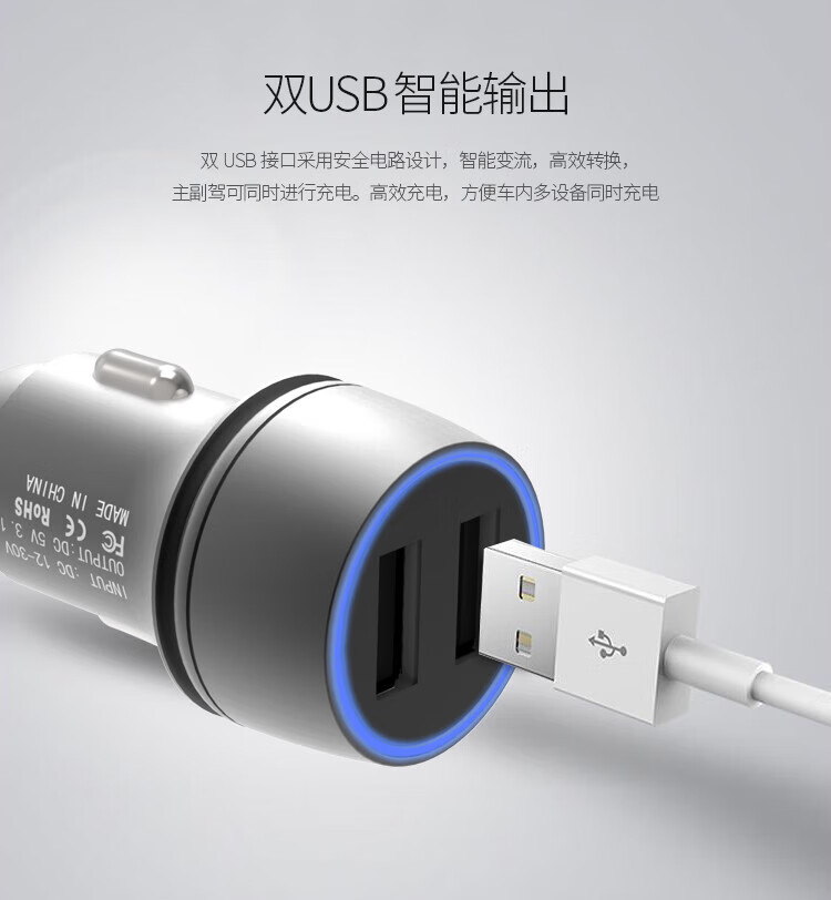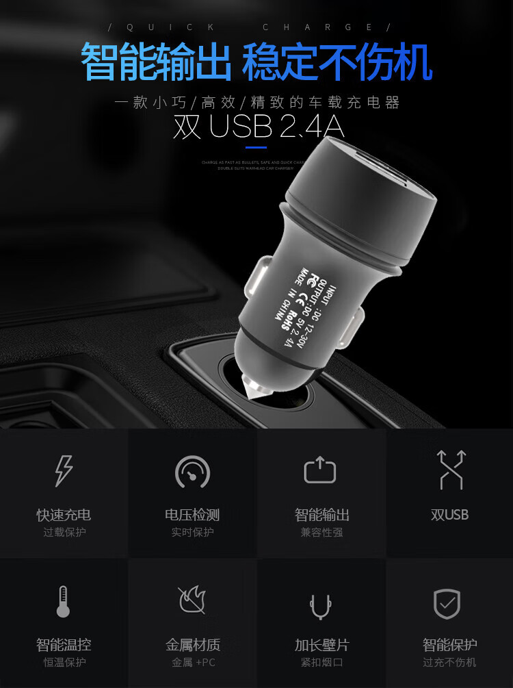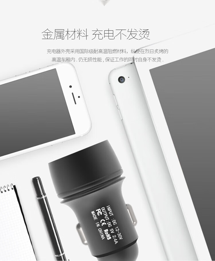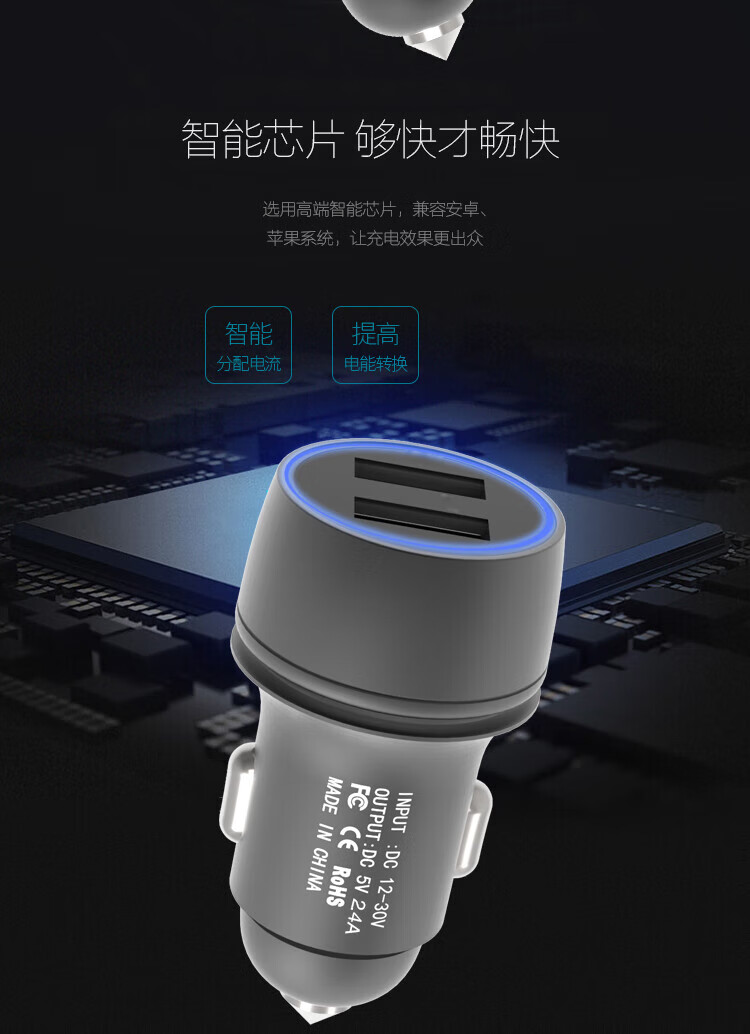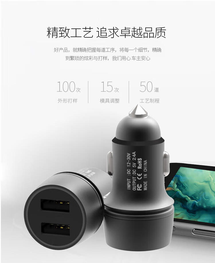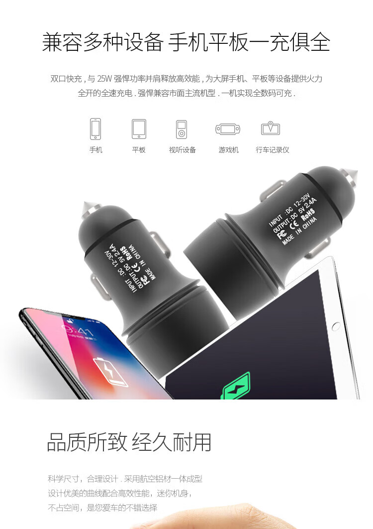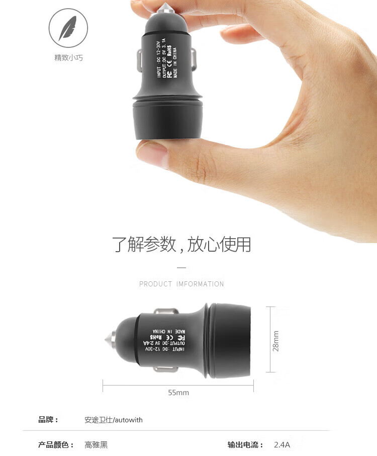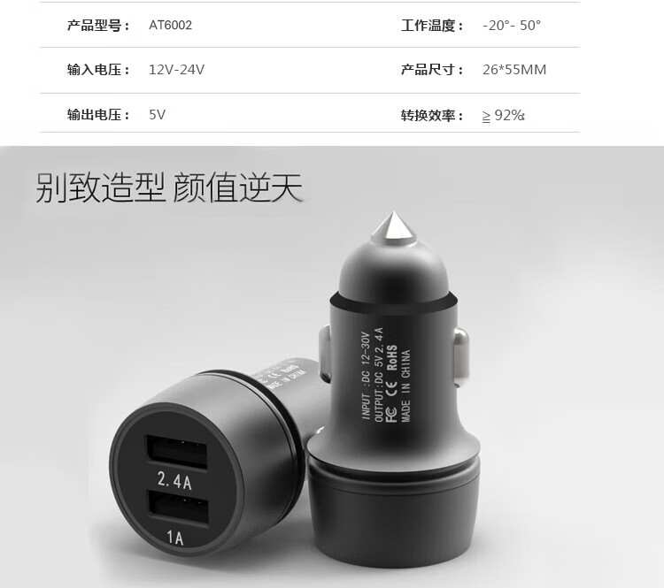 安途卫仕金属安全锤车充 小巧/便捷/精致的车载充电器 AT6002