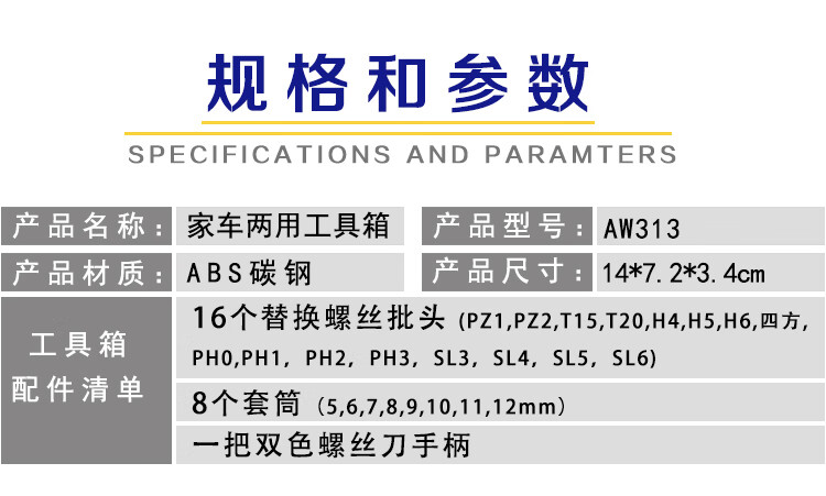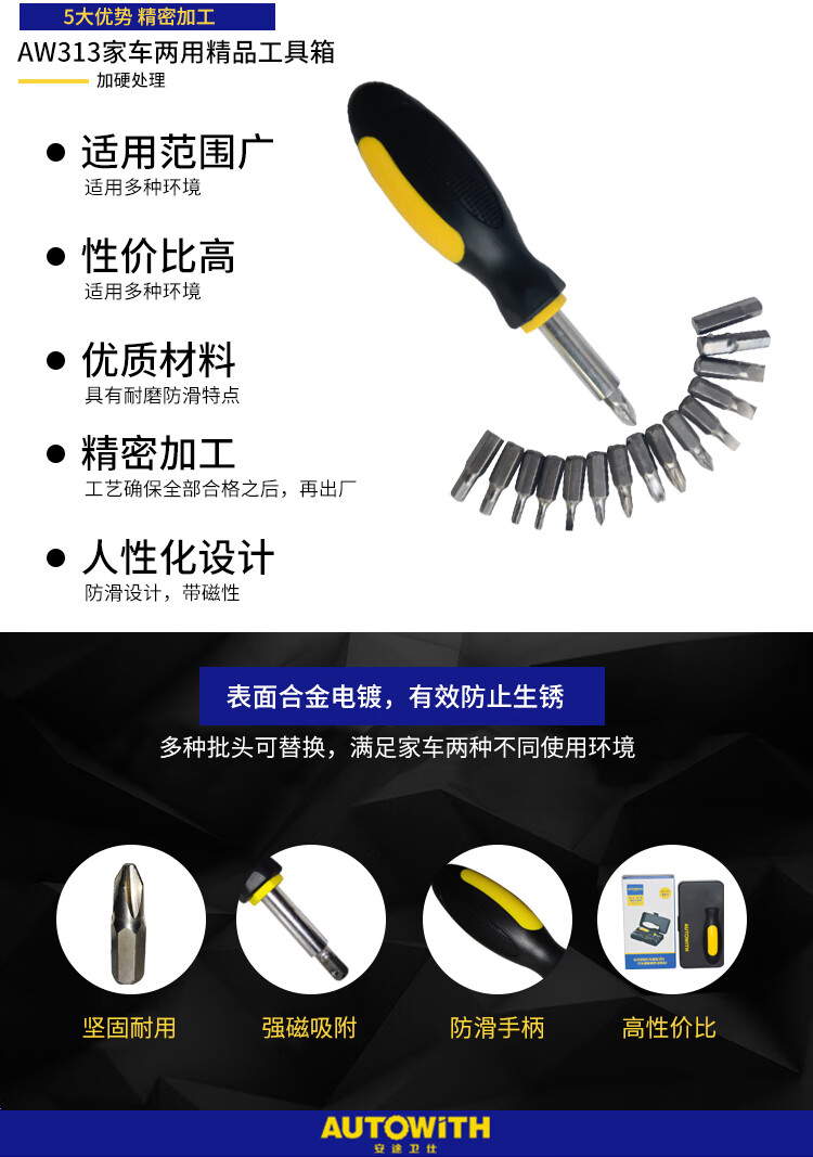 安途卫仕家车两用精品工具箱 小巧便捷 多种功能 AW313