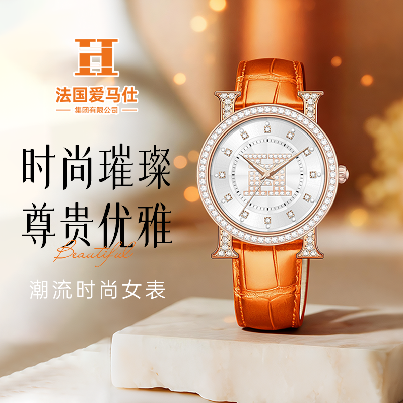 法国爱马仕H圆表时尚崔璨尊贵优雅潮流女表真皮表带三色可选手表