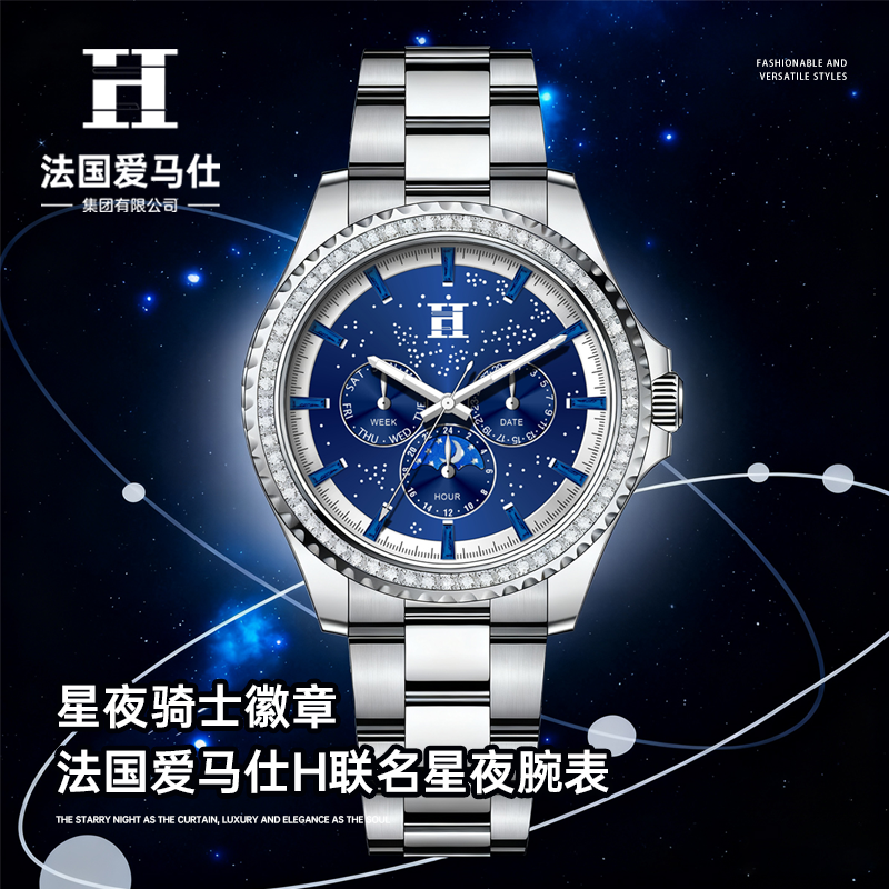 法国爱马仕H星夜骑士徽章多功能潮流男士腕表双蝴蝶按压卡扣手表