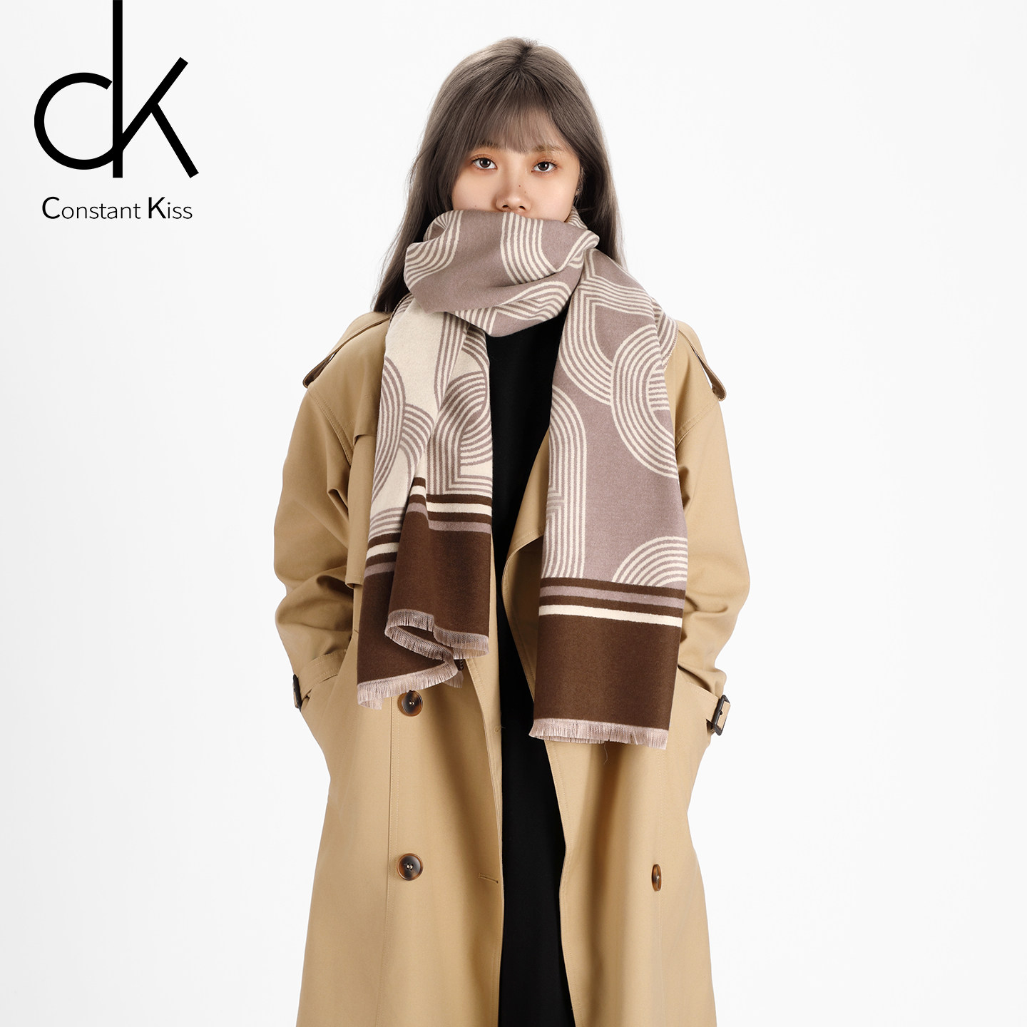 CK摩登几何暖绒围巾环链几何是时光织就的艺术肌理让每一次转身都成风景
