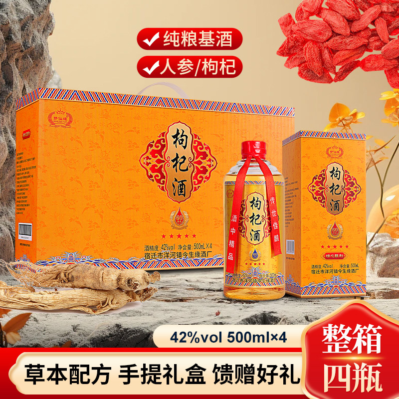梦仙缘枸杞酒42度白酒500ML*4瓶