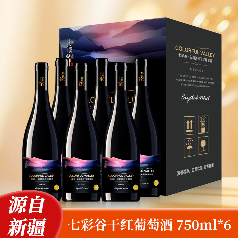 源自新疆 七彩谷云境 美乐干红葡萄酒 750ml*6瓶